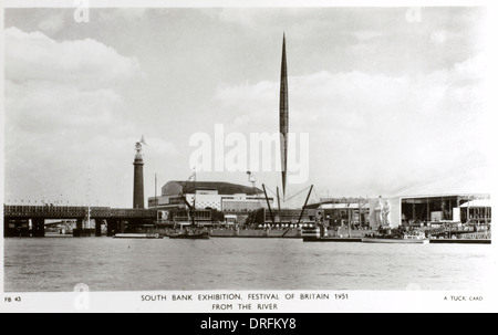1951 festival of britain postcard, featuring the skylon and 'the islanders' by sculptor siegfried charoux.